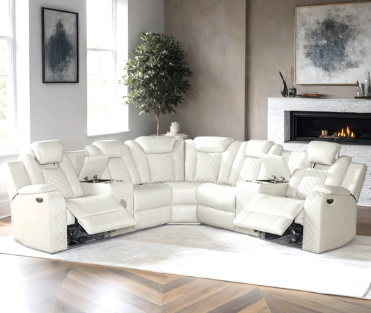 NEWYORK WHITE - LEATHER Power Reclining Sectional